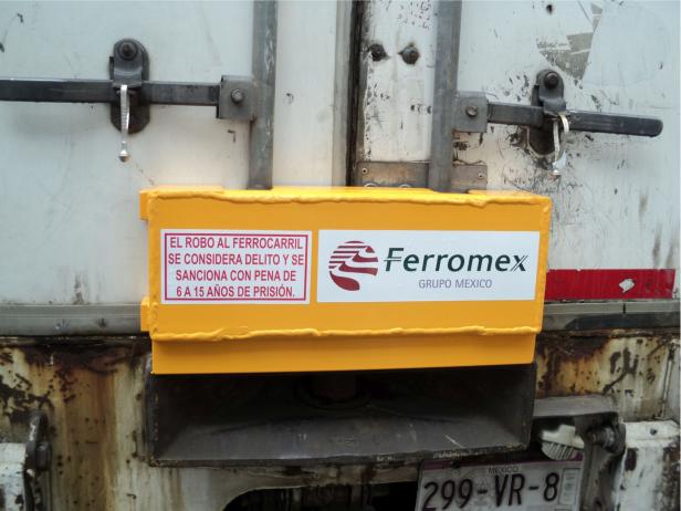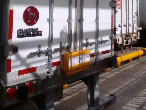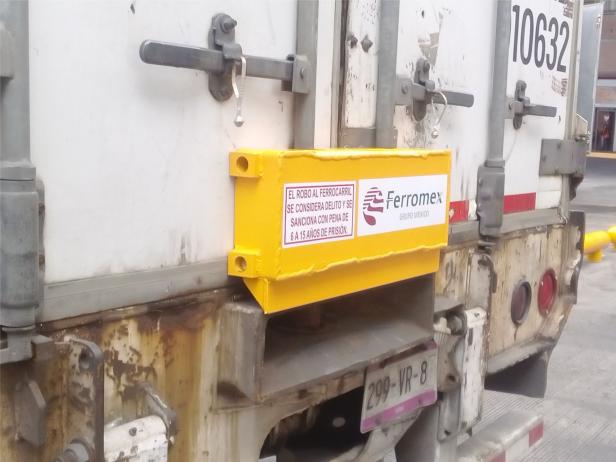Bloqueador o candado para caja seca de trailers al igual que los de contenedor marítimo, se colocan sujetos de las barras cubriendo las guías y el mecanismo inferior, evitando la apertura, minimizando el riesgo de robo
