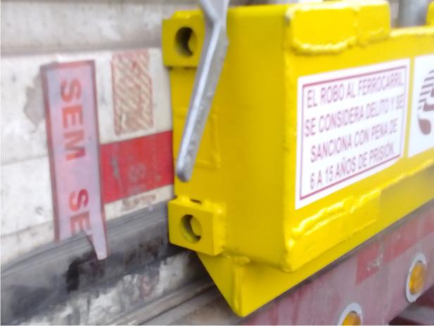 Bloqueador o candado marítimo intermodal - Estos bloqueadores se colocan en las barras de apertura, cubren las guías de las barras y el mecanismo interior de apertura evitando que se abra aunque corten las barras, minimizando el riesgo de robo.